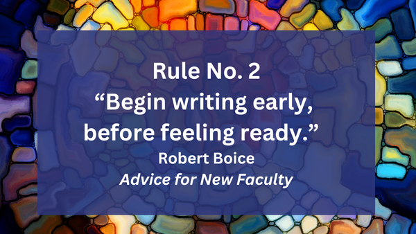 As we continue recalling advice for writers from Robert Boice, today we'll think about Rule No. 2: "Begin writing early, before feeling ready." This rule is not intuitive for beginning writers, especially those of us who went to graduate school. We are taught that