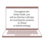This symbol appears throughout the Study Guide offering tips to help you teach this material in a virtual or hybrid setting, gathering people online and using