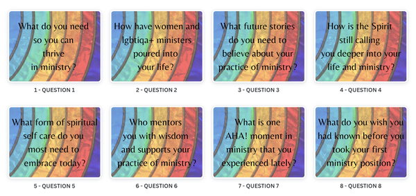 Pastoral Imagination book also has over 200 questions for reflection. The new Baptized & Ordained community and book-in-progress is a different format, yet you will meet more women and lgbtiqa+ clergy. And you will learn more of their ministry stories in coming year. If you join the community, you will also continue to benefit from reflection questions that help you to flourish in ministry. Join the community to learn, be inspired, and form strategies for changing your own context! Join Baptized & Ordained by Sunday night September 24, and you will receive this BONUS set of questions. You can print them, share them, or just journal about them giving your ministry sustained reflection.