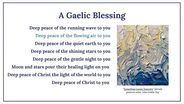 Deep peace of the flowing air to you, today. Welcome to the second week of Advent 2023. We are continuing to bring to you a new prayer practice, rooted in ancient ways. Music and art come together for your reflection and