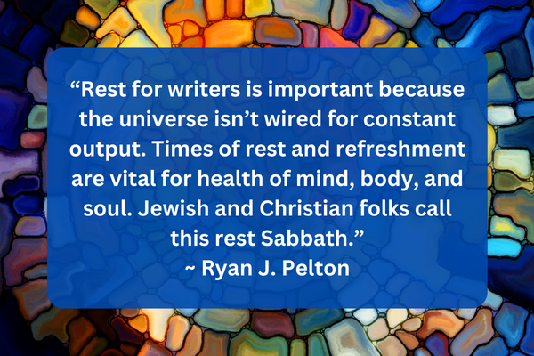 Writing Table is all about showing up and building a solid collection of writing habits. A major part of that collection of habits is to be well-rested. Sometimes I share about my own rest and sleep habits -- part of my own accountability. We all need solid rest. As writer Ryan Pelton reminds us, "the universe isn't wired for constant output."