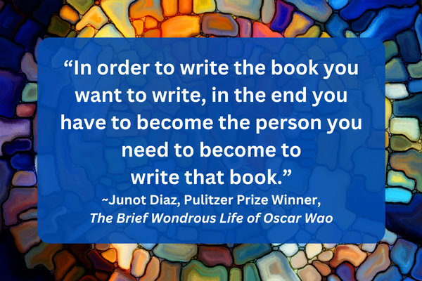 Junot Diaz, author of The Brief Wondrous Life of Oscar Wao, which won the 2008 Pulitzer Prize in fiction, gets this. He says our identity my need to shift if we are to become the person who will write the book we desire to read and share with more readers.