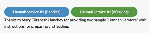 This recording of a Hannah Service is led by Mary Elizabeth Hanchey and Erin Robinson Hall (12 min).