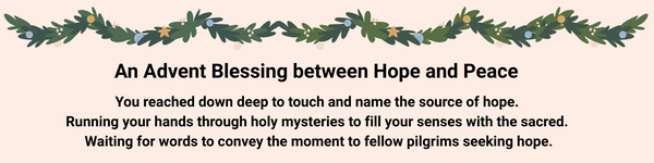 I'm grateful for you, , and may hope, peace, joy, and love be heading your way in the season of Advent. Watch this email for weekly prayers for you in the coming weeks.