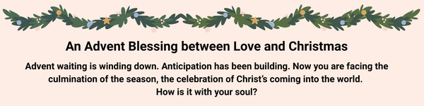 As Advent winds down, and with Christmas just around the corner, we have one final Advent blessing for you this morning. It comes from 3MMM team member, Laura Edgar. She wrote a blessing between love and Christmas, and we hope it will meet you in this moment.Â